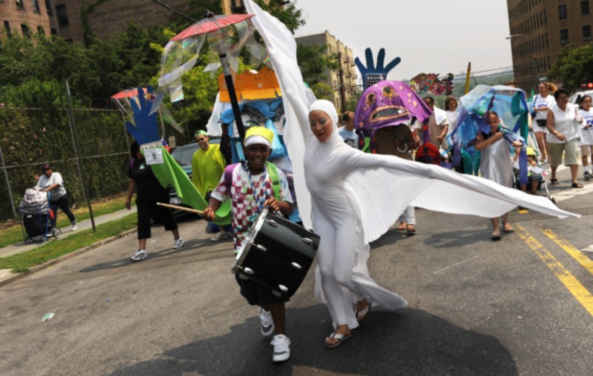 Большие импровизированные медузы, люди в костюмах рыб и разрисованные фигуры лодок. Все это можно увидеть на улицах Хантс-Пойнта в одно из воскресений июня. Это Рыбный парад. Таким необычным и веселым способом жители района шагают четверть мили к набережному парку, где вокруг главной сцены проходит главный праздник — Фестиваль искусств. В этой статье расскажем историю создания общественной организации, которая положила начало этой интересной традиции, и непосредственно о необычном рыбно-художественном фестивале. Далее на bronxski.
